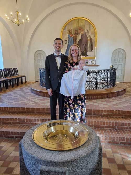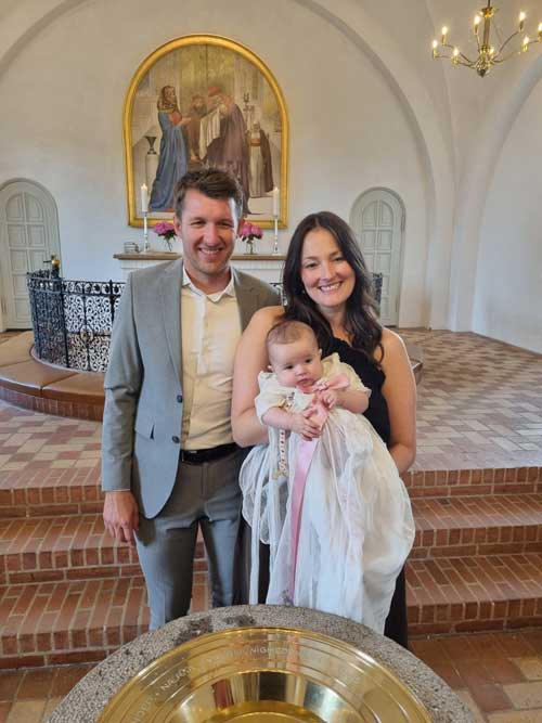 DÅB Molly med mor Camilla og far Martin ved dåben 9. august