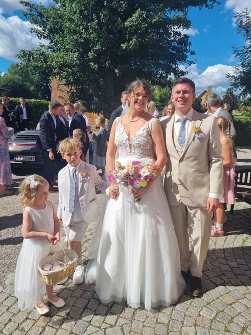 Vielse Sara Sofie og Alexander havde ungerne med til deres skønne sommervielse den 23. august